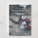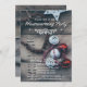 Lantlig country, ladugårdstema för inflyttningsfest - Väderbitet grå, gammalt ärrad ladugårdspanel fotobakgrund med julgransprydnader i country stil och röda och vita bjällror. Texten 'Vänligen kom och fira vår inflyttning' i ljust grå med skuggverkan. En elegant rullande ram skiljer inledningen från festdetaljerna. Baksidan har en likadan rustik träd Bakgrund. Not: Alla bilder är utskrivna. Använd knappen Anpassa för att ändra - typsnitt, storlek, färg eller placering. Snygga vintrinska inbjudningskort med rustikt tema, country chic-inflying, lanthusinflytt eller inflyttningsfirande under jul- och nyårshelgen. Även elegant inbjudan till öppen hus-fest. Vi har matchande festmaterial och rustika juldekorationer i vår Zazzle.com/angela65-butik.
