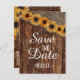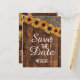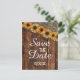 Rustik Trä & Jutesäck Solros Bröllop spara datum vykort! ~ Kolla min butik för att se hela brölloppsserien för denna design!