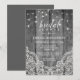 En enkel rusticerad svart-vit bröllopsinbjudan med strängljus och spets som överlagras ett trädunderlag. För matchande produkter, skriv "rllw19" i sökfältet. Maila mig @ JMR_Designs@yahoo.com om du behöver hjälp eller har några speciella önskemål.
