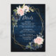 Mörk marinblå blomster geometrisk bröllopsdetaljkort med elegant bukett av marinblå, kunglig blå, vit, rosenskär ros och salvia gröna eukalyptusblad och elegant glitter geometrisk neutral ram. Vänligen kontakta mig för hjälp med anpassning eller om du behöver någon annan produkt med denna design.