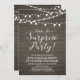 Fira din speciella dag med denna rustika överraskningsfest-inbjudan! Denna design har en stilren script-typografi och ljusslingor på en rustik trädgård bakgrund. Perfekt för en trädgårdsfest, ladugårdsfest eller någon överraskningsfest.
