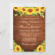 Rustik Trä Akvarell Solros Blommor och Grönska Bröllopsinbjudan