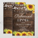Sätt tonen för en varm och inbjudande fest med denna rustika solros-inbjudan till repetitionen. Med en rik träbakgrund, glödande strängljus och livliga solrosaccent är denna design perfekt för mysiga och eleganta bröllopsevenemang.