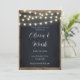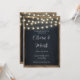Fira din stora dag med denna rustika bröllopsinbjudan med en kritskriftsbakgrund, gnistrande stränglyktor och elegant typografi. Perfekt för lada bröllop, utomhusmottagningar och rustika chic-firanden. Fullt anpassningsbar mall med dina detaljer.