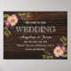 Enkel, lantlig, modernt typsnitt, rustic trä välkomst bröllopsaffisch med vattenfärg blekrosa blommor.