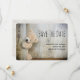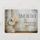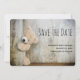 Spara datumkortet med ett foto av en söt stoppad björn som står vid en rustisk trävägg/bakdel.
