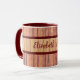 Denna mugg har en samling rustika träpaneler med en jordnära rosa-brun nyans. Du kan lägga till ditt namn, initialer eller meddelande här.