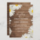 Rustik Träbröllopsinbjudan med Margarit har ljusa vita margariter på en varm träbakgrund med elegant vit kalligrafi. Perfekt för utomhus-, landsbygds- eller ladbröllop, ger denna charmiga design en fräsch och glad touch till din rustika bröllopspappersserie. Ett vackert val för vår- eller sommarfiranden fyllda med naturlig charm.