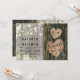 Landsbröllop inbjudningar med ett rustikt träd med ett skulpterat hjärta som innehåller era initialer och en söt kärlekstext, stränga glittrande ljus och modern brölloppsformulering över en bleknad skogsmiljö.