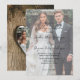 En vacker rustik bröllopsdekor med en närbild av trädets bark på baksidan av kortet. Den naturliga texturen på barken i kombination med det varma ljuset skapar en romantisk och förtrollande atmosfär, perfekt för utomhus- eller skogsinspirerade bröllop. På framsidan av kortet finns ett vitt gradientark. Gör designen söt och vacker.