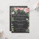 Klassisk elegant femtioårs bröllopsdags inbjudan med rosa och röd burgunder handmålad peonrosor med gröna blad och löv och med ett trendigt chic handskrivet redigerbart kalligrafi manus på en mörkgrå kolstavlbakgrund. +++++++++++ Lämplig för en vår-, sommarträdgård eller höst / utomhus / vintage blomster firande födelsedag / bröllopsdag / festlig fest .