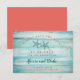 Modernt Spara datum-kort med en rustik trädgårds bakgrund i turkos färg. Två sjöstjärnor ger en strandkänsla och representerar det engagerade paret. Korallfärgen på teckensnittet ger en frisk kontrast. Detta kort är idealiskt för ett destinationbröllop, strandbröllop eller havsutsiktsbröllop. Den rustika effekten är perfekt för en mysig strandtema-evenemang.