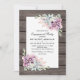 Landlig chic bröllopsinbjudan med en rustik träladdabakgrund, en hörn display med suckulenter och en textmall för firande.