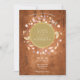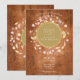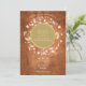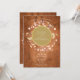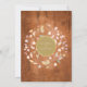 En vacker dekorativ rustik lagerkrans omger en falsk guld folie kant som innehåller det lyckliga parets namn. Nedan är din bröllopsinformation skriven i klassisk elegant text på en vintage träbakgrund. Baksidan visar det gifta parets namn inom en matchande rustik blomster- och falsk guld folie girlang på en vintage träbakgrund. Designad av Thisisnotme