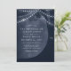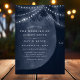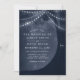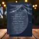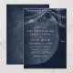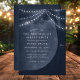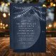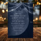 Denna charmiga bröllopsinbjudan har en marinblå bakgrund dekorerad med rustika strängljus och en romantisk trädskulpturdesign, vilket ger en personlig och intim touch. Perfekt för utomhus- eller kvällsbröllop, fångar denna inbjudan vackert en rustik, romantisk atmosfär som är idealisk för naturälskande par. Det mjuka skenet från ljusen mot den rika marinblå bakgrunden skapar en tidlös look som passar bröllop under alla årstider.