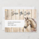 En vacker akvarellmålning av en palominofärgad / rökig krämfärgad / champagnekolorerad häst ramad av en perlino-kalkad vit trädgårdsbakgrund bestående av vertikala plankor med en kolgrå trästruktur. Hästen tittar åt höger mot namnet på det par som gifter sig och har vackra rosa rosor och grå blad runt halsen. En vit inläggning har mallar för din personliga text och baksidan har en vit bakgrund med en annan ros och en mall för ytterligare information, om det behövs. Ta helt enkelt bort detta om det inte behövs. Dessa är idealiska för en bröllopsfest eller -fest och är perfekta för ett country western-tema bröllop.
