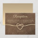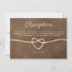 Rustik Trähjärta med Guld Rep Bröllopsfest Inbjuda