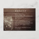 Rustik trämasonburk lantlig mottagning Detaljerkort. Perfekt för alla bröllop. Enkel men elegant design för bröllopsinbjudan. Designen visar namnen med en elegant typsnitt. Kan anpassas till era bröllopsfärger för texten och bakgrunden. Grafik, foto eller monogram kan läggas till för att anpassa mallen. FÖLJ OSS! -- FB: @ElegantInvitationAndMore IG: @Elegant_Invitation ZGROUPON