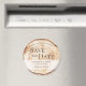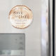 Dela med dig av dina speciella nyheter i rustik stil med denna träskiva Spara datum- bröllopsmagnet, designad för att efterlikna ett naturligt trädringssnitt. Varma, organiska nyanser i kombination med en ren layout skapar en perfekt balans mellan naturinspirerad charm och modern enkelhet. En subtil vit överlagring säkerställer att era namn, datum och plats förblir tydliga och lätta att läsa samtidigt som den vackra trästrukturdesignen visas upp.