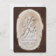 Rustik bröllops träskiva save the date inbjudan. Med vackra akvarelldetaljer. Denna moderna bröllopsinbjudan kommer säkert att sätta stilen för din stora dag.
