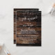 Här är en slående inbjudan till din efterbröllopsfest. Bakgrunden är först täckt med en bild som visar grovt bearbetat mörkbrunt trä med horisontella linjer. Toppen på båda sidor är draperad i en grafisk design som påminner om strängar av gnistrande ljuspunkter. Era detaljer visas i vitt. För att komplettera det sans-serif-teckensnitt som används för er redigerbara text, har jag lagt till nyckelord och accenter som "just married", "och" och "kärlek" på baksidan, med ett vackert, modernt kalligrafiskt teckensnitt.
