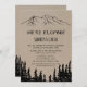 Denna rustika träskogsberg bröllopsfirande inbjudan är perfekt för en skogsbaserad efterbröllopsfest. Den naturinspirerade designen har siluetten av en tallskog och berg på falskt kraftpapper. RSVP-kort säljs separat.