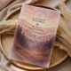 En lugn och stämningsfull design inspirerad av dimmiga bergslandskap och tysta skogsmiljöer. Mjuka akvarellskikt av tallar och avlägsna kullar tonar försiktigt in i bakgrunden och skapar djup och en lugn, romantisk stämning. Den dämpade paletten av salvia grön, sval grå och mjuk elfenben ger designen en raffinerad, naturdriven elegans – perfekt för par som dras till minimalistisk estetik och intima utomhusfiranden.