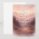 En lugn och stämningsfull design inspirerad av dimmiga bergslandskap och tysta skogsmiljöer. Mjuka akvarellskikt av tallar och avlägsna kullar tonar försiktigt in i bakgrunden och skapar djup och en lugn, romantisk stämning. Den dämpade paletten av salvia grön, sval grå och mjuk elfenben ger designen en raffinerad, naturdriven elegans – perfekt för par som dras till minimalistisk estetik och intima utomhusfiranden.