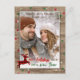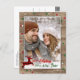 Unikt, klassiskt, trendigt, rustikt och dekorativt julkort, med Glad jul Gott nytt år textcitat, och utrymme att anpassa eller personifiera med ett foto och namn (eller familjenamn) som du väljer på en rustik lantlig stuga stil väderbiten bondgård staket träplankor struktur mönster, och festliga klassiska röda och gröna färgade konfetti.