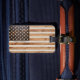 Din bärbara dator kan resa i stil med amerikansk anda med den rustic wood tone amerikanska flaggan bagagelapp. Bra för kamera, verktyg, skolryggsäck och gymväskor. Personalisera med ditt namn.