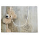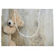 Gåsväska med ett foto av en söt stoppad björn som står vid en rustisk trävägg/ryggdroppe.