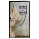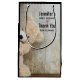 Tack för att du har en gåspåse med ett foto av en söt stoppad björn, som står vid en rustisk trävägg/bakdel.