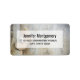 Adressetiketter med ett foto av en söt stoppad björn, som står vid en rustisk trävägg/bakdel. En halvgenomskinlig lagrar överst med texten inuti.
