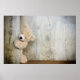 En poster med ett foto av en söt stoppad björn, som står vid en rustisk trävägg/bakdel.