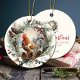 Tupp, husdjur i en rustisk julandedräkt med pinekoner. Personlig (året på framsidan och texten på baksidan) Julprydnad för husdjur, tupp, fjäderfä älskare.