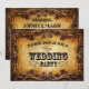rustik typografi västlig landsbygd bröllopsinbjudningar, gamla västliga bröllopsinbjudningar, vintage typografi bröllopsinbjudningar och västliga bröllopsgavor, västliga spara datum för bröllopet.
