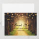 Rustik väg med trädsträngljus till bröllop tack kort