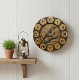 "Där naturens sång håller takten." Denna förtrollande rustika väggklocka visar en delikat sångfågel som sitter på en väderbiten gren, utförd i intrikat träsnidekonst i mitten av en träliknande design. Romerska siffror visas på stockliknande rundlar runt om på klockan, vilket skapar en autentisk stugaestetik som för med sig skogens fridfulla anda in i ditt hem. Den tryckta designen visar det naturliga träets ådring och årsringar, medan den detaljerade sångfågeln med sina ömtåliga fjädrar, milda kroppshållning och själsfulla blick symboliserar frihet, glädje och den enkla skönheten i naturens tysta morgnar. Perfekt för stugor, solrum, rustika bondgårdar, fågelskådare, naturentusiaster eller någon som finner frid i skogens charm. Det här är inte bara en klocka; det är en hyllning till livets mjuka ögonblick och den tidlösa sången från vildmarken. Oavsett om du skapar en