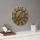 Rustik väggklocka med sångfågel | Träliknande stug