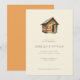 Denna bröllopsinbjudan har en charmig illustration av en timmerstuga med varma jordnära toner och mjuk belysning, vilket skapar en mysig och inbjudande atmosfär. Designen använder en ren serif-teckensnitt för texten, arrangerad i en balanserad layout på en neutral beige bakgrund som framhäver den lekfulla men ändå förfinade stilen. Perfekt för par som söker rustik elegans, sätter denna inbjudan tonen för en minnesvärd fest med sin semi-realistiska representation och milda färgpalett.