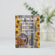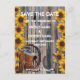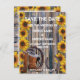 Lantlig vilda västern ranch tema med snygga gula solrosor blommor, cowboystövlar och hästsko på en sliten trädörr i en ladugård, träladdad rädda datum för bröllop, lätt att anpassa med brudens och brudgummens namn till schablon eller textmallar i varumärkesstil för att skapa din egen unika manliga country stil anpassad för bröllop rädda datum för din speciella ranch eller gård bröllopstillfällen, evenemang och firanden. Besök PERSONALISERADE_BRÖLLopsaffären för matchande koordinerade bröllopssatser. Anpassa texten och teckensnittet. Observera att den gyllene färgen inte är metallisk.