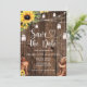 Skapa ett minnesvärt första intryck med det här fantastiska rustika västerländska solros-kortet "Save the Date" för bröllop! Kortet har livfulla akvarell-solrosor, lysande murar-ljusstakar, lager av strängar med lampor, cowboystövlar och en klassisk cowboyhatt på en rik, varm och mörk trämiljö. Det ultimata country-västerländska "Save the Date"-kortet som kombinerar solsken, rustik glöd och västerländsk anda — allt på ett vackert kort!