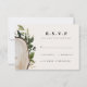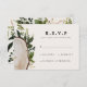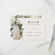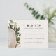 Rustik vattenfärg blommande bröllop S.V.A.R. svarskort. Träskiva och lövdesign. Elegant modern bröllopsserie. Del av en samling
