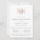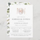 Vattenfärgsinställning bord för plåt, gaffel, knivar och napkin, inbjudan till repetitionsmiddag. Chic och enkel typografi med målat blad och blommönster.