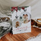 Skicka varma önskningar i en charmig stil med detta klassiska julkort med rustik tema, med vattenfärggrönska och fantasifulla ornamentramar för bilder. Framsidan visar ditt favoritfamiljefoto omgivet av festliga accenter, medan baksidan har plats för ett hjärtligt meddelande till nära och kära. En perfekt blandning av mysig och elegant, denna design fångar julens magi med en personlig touch.