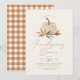 Bjud in vänner och familj till en Thanksgiving-middag med denna eleganta inbjudan, med en vattenfärgspumpa, höstfärger och ett orange-rutat mönster på baksidan.