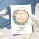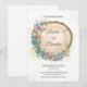 Rustik spara datum bröllopskort med vildblommor, lavendel och blåbär arrangerade runt en naturlig träskiva. Perfekt för skog, boho eller rustika bröllop. Anpassa med dina bröllopsdetaljer för en varm och naturlig look.
