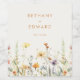 Denna design kombinerar elegans och nyckfullhet och matchar modern minimalistisk text med en rad ömtåliga vildblommor i akvarell perfekt för boho-inspirerade bröllop.