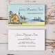 Vi presenterar vårt Rustika Vintage Bergstuga Logi Företagskort. med en akvarellstuga inbäddad i en dimmig grön tallskog. Perfekt för uthyrning av semesterstuga, logi, sjöhus och stuga.