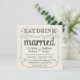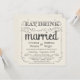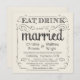 Ät, dryck och vara gifta - inbjudningar till rustiska landsbyggsbröllop i Vintage stil - Swirly, ruttna scrollsar och typografi i gamla mode på antika, vita glasögonkorvar. Lägg till namn och bröllop i den här mallen för enkel använda. Elegant, men roligt och vismisk, kritskript i stil kan ändras för ditt formella eller halvformella bröllop-tema. Avslappnad av modern stil är perfekt för bröllop av trendig contemporary med en roligt med sofistikerad charm för den traditionella bruden och brudgummen. Kontakta oss om du behöver mer utrymme för dina uppgifter om bröllop. Andra storlekar och stilar för kretskartong finns tillgängliga tillsammans med samordnande stilar för förlovningsfest- och par-dusch. ANMÄRKNING: Den här produktdesignen är endast avsedd för kvadratiska kort - kräver extra porto.